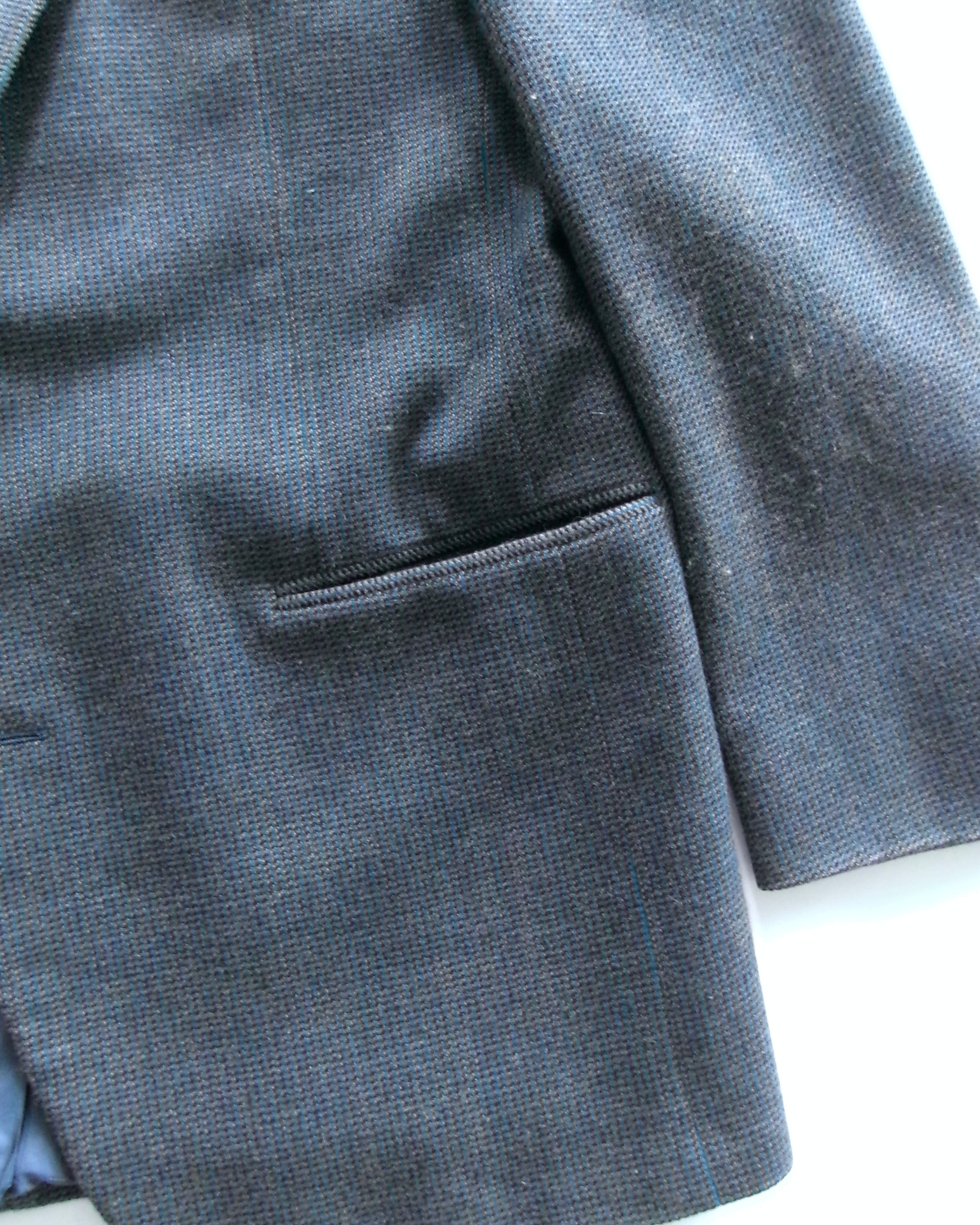 ネイビーをメインに千鳥格子のような細かい柄がアクセントのジャケット